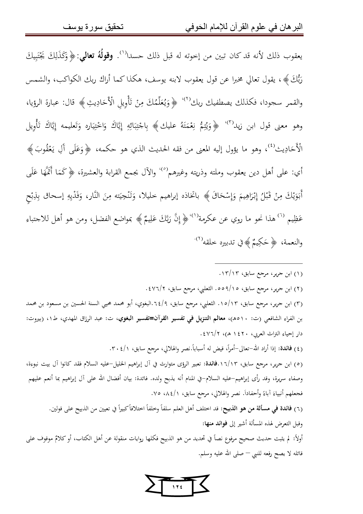 كتاب البرهان في علوم القرآن للإمام الحوفي - سورة يوسف