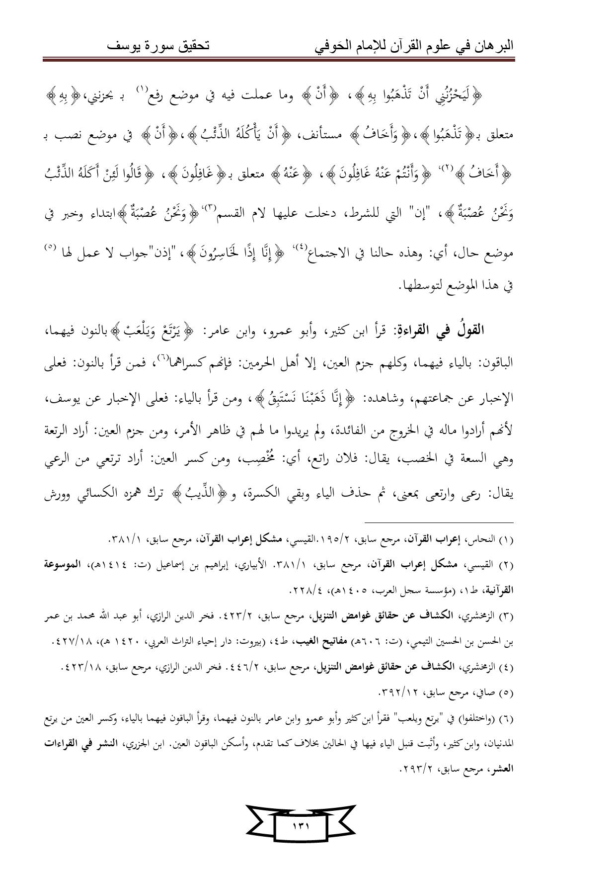كتاب البرهان في علوم القرآن للإمام الحوفي - سورة يوسف