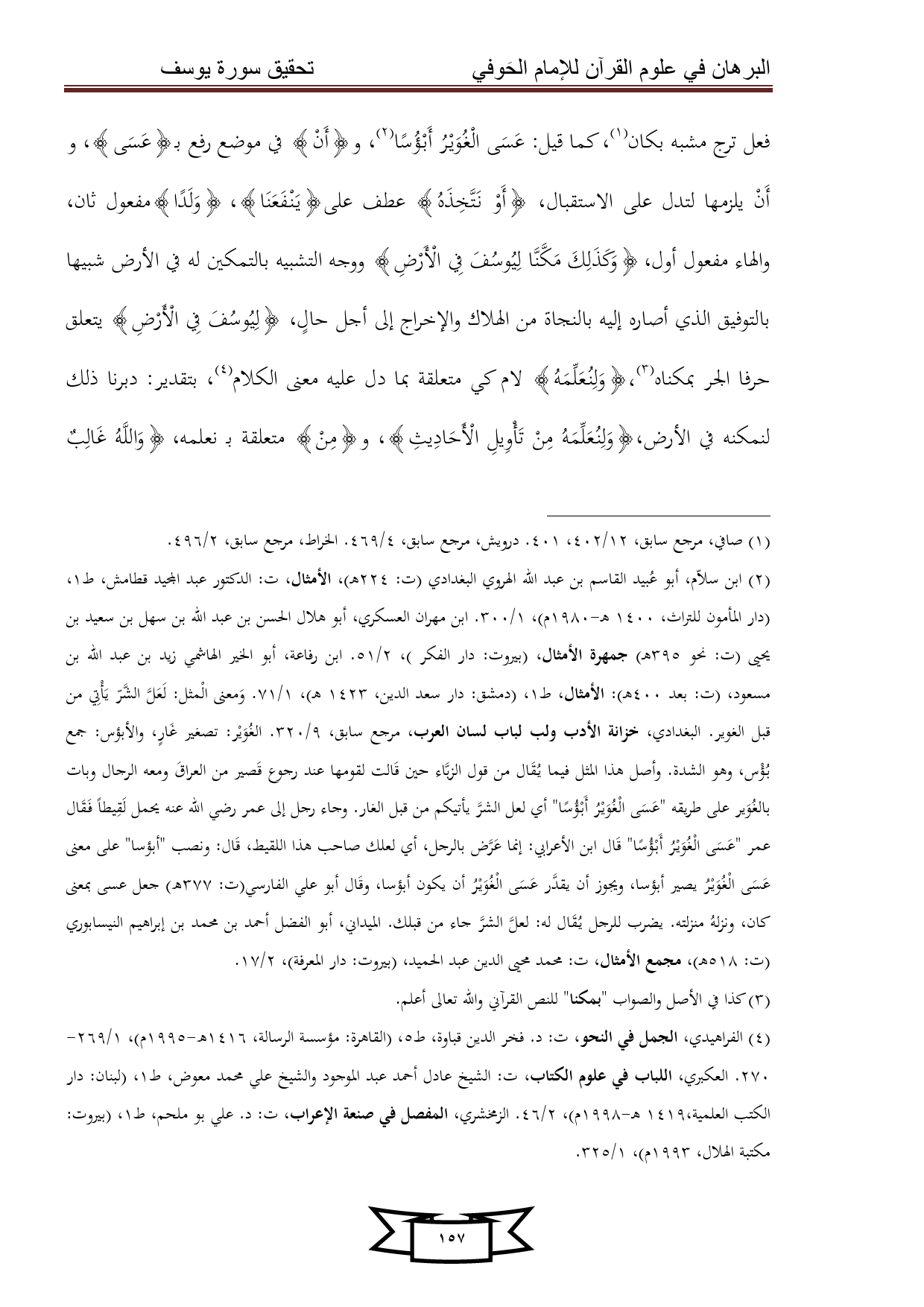 كتاب البرهان في علوم القرآن للإمام الحوفي - سورة يوسف