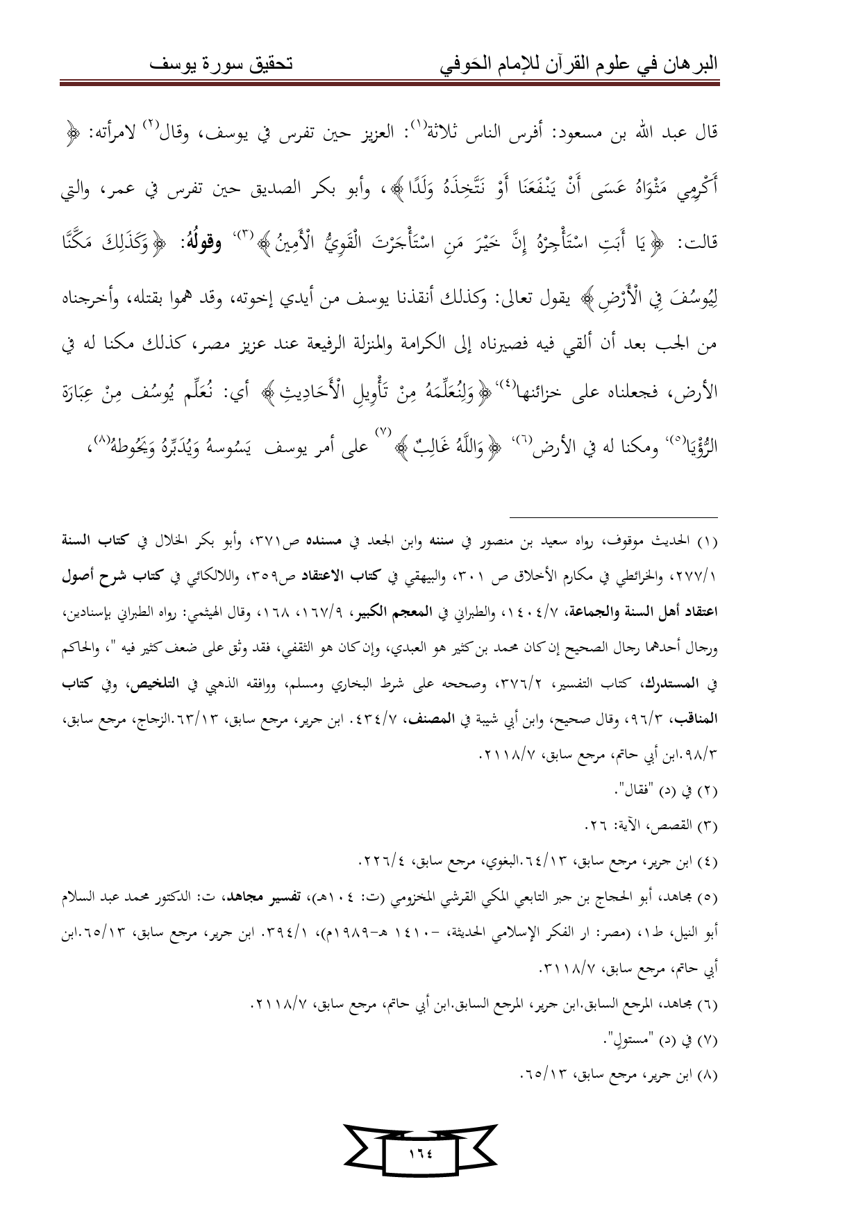 كتاب البرهان في علوم القرآن للإمام الحوفي - سورة يوسف