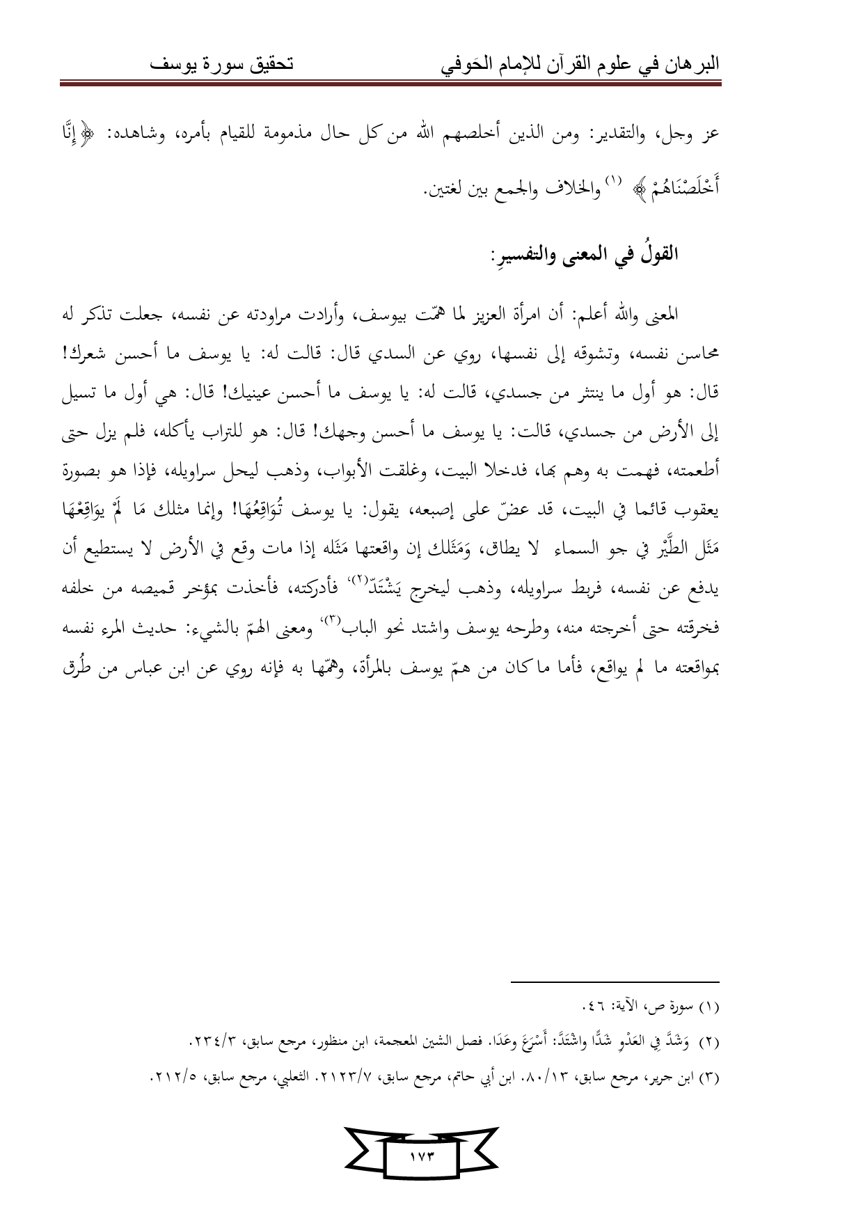 كتاب البرهان في علوم القرآن للإمام الحوفي - سورة يوسف