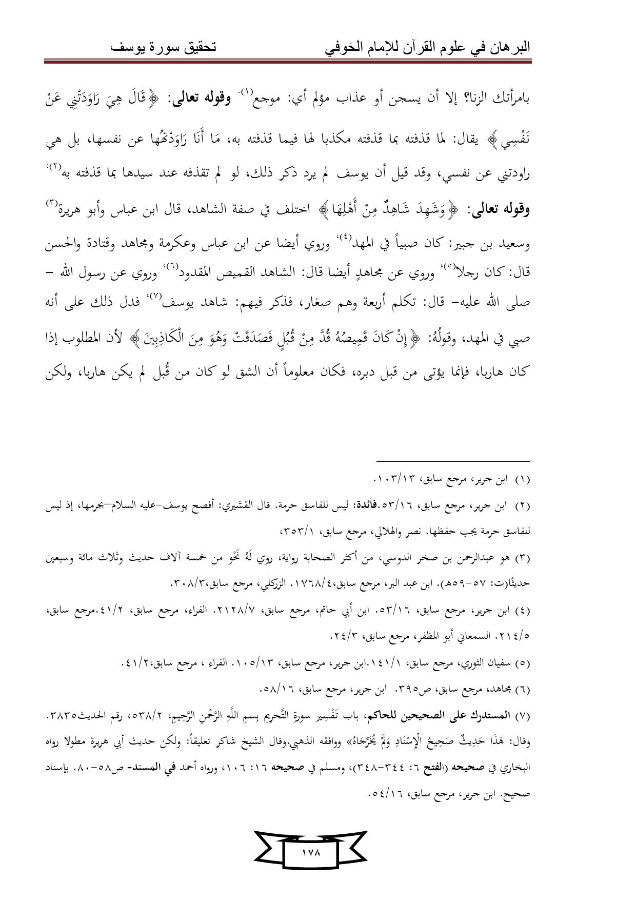 كتاب البرهان في علوم القرآن للإمام الحوفي - سورة يوسف