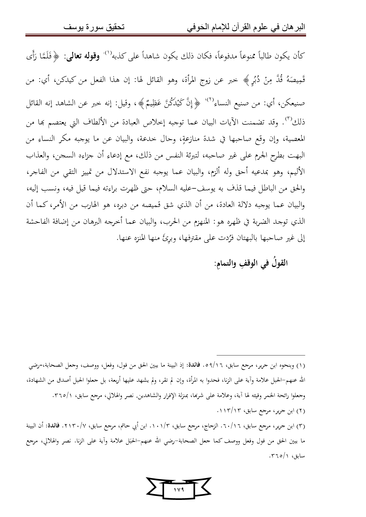 كتاب البرهان في علوم القرآن للإمام الحوفي - سورة يوسف