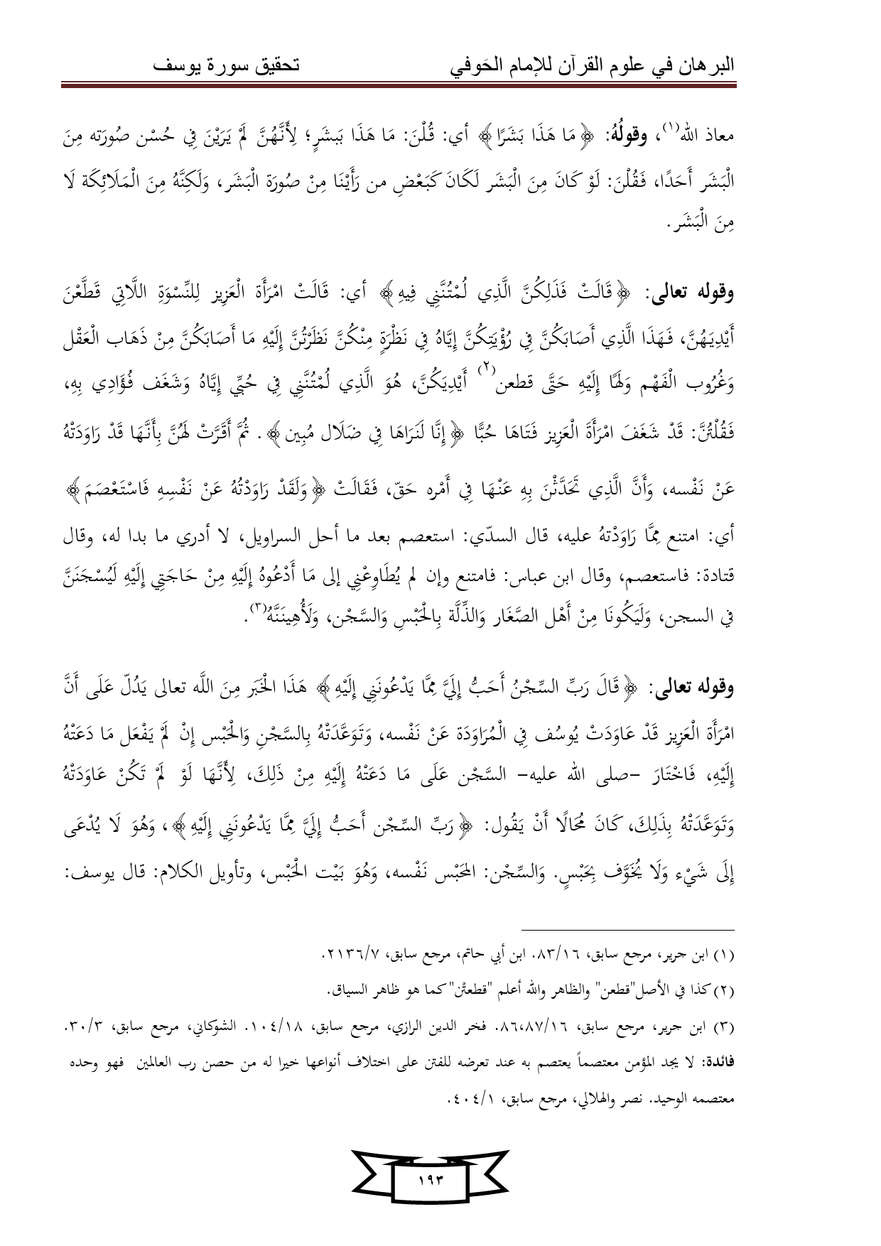كتاب البرهان في علوم القرآن للإمام الحوفي - سورة يوسف
