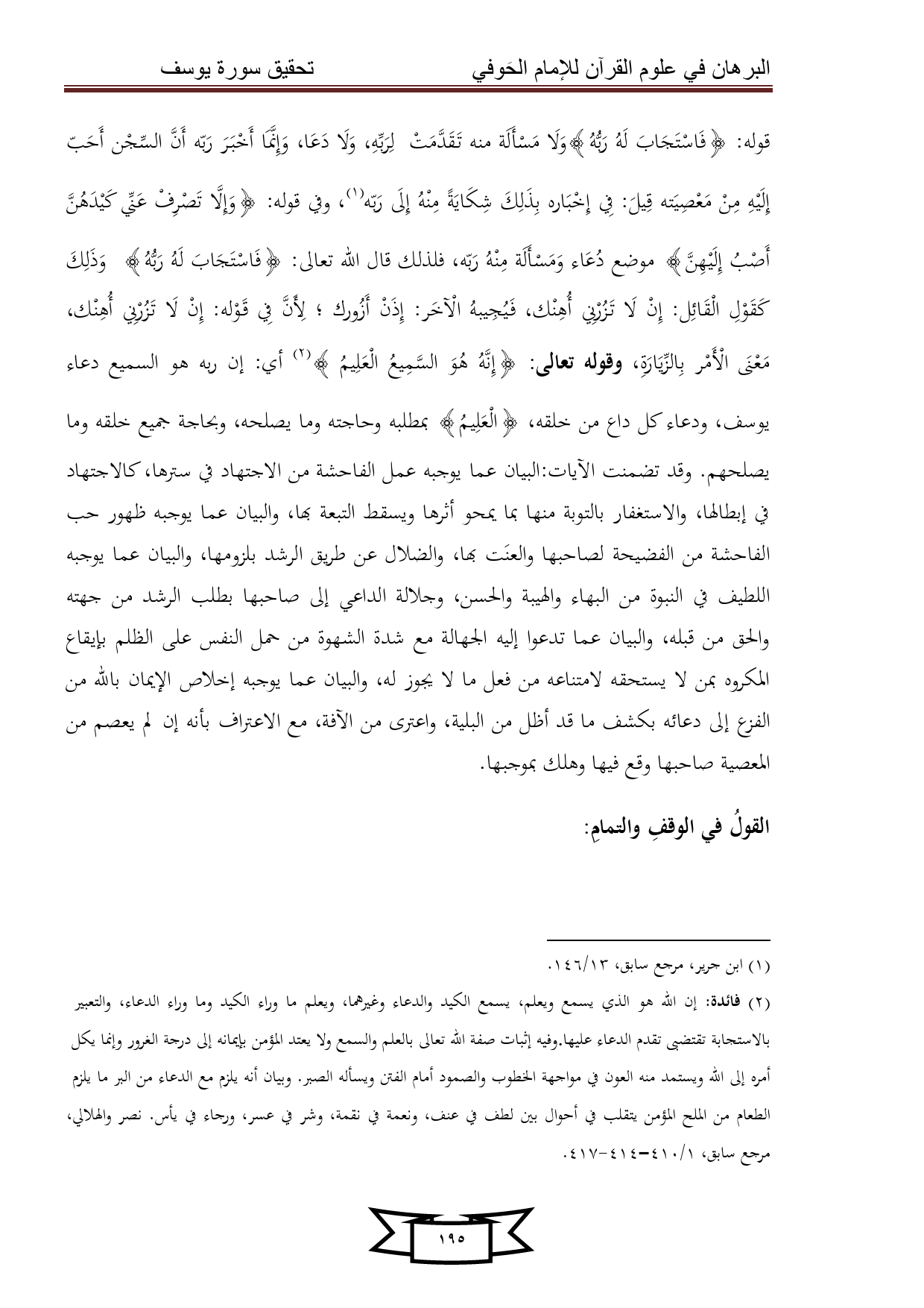 كتاب البرهان في علوم القرآن للإمام الحوفي - سورة يوسف