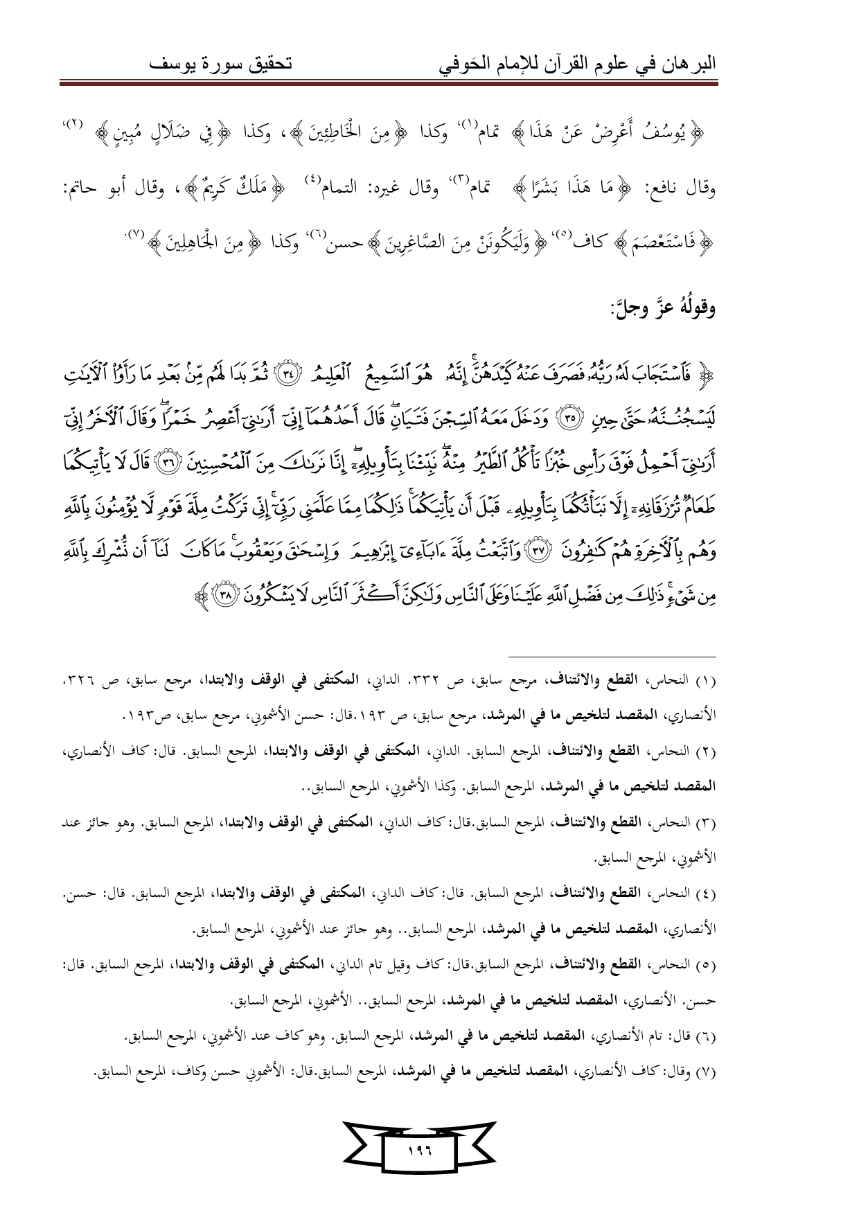 كتاب البرهان في علوم القرآن للإمام الحوفي - سورة يوسف