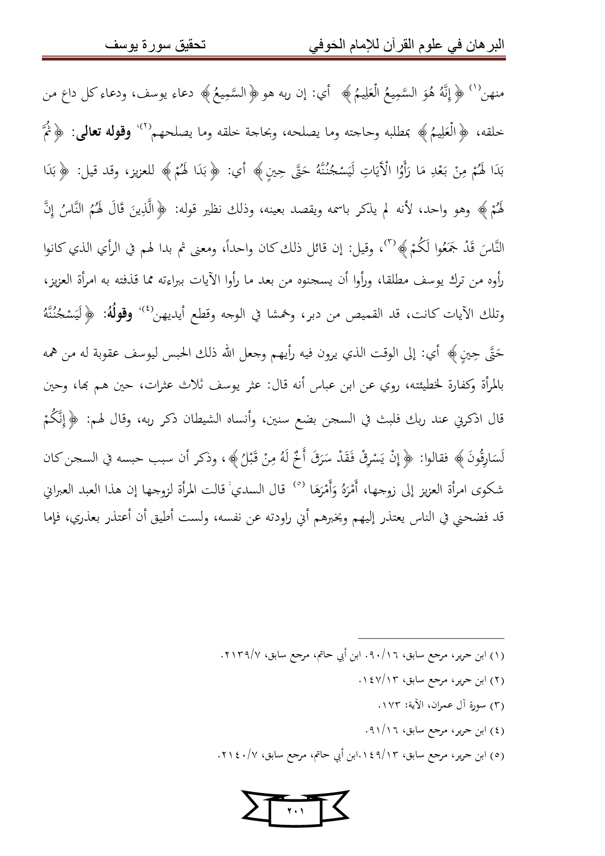 كتاب البرهان في علوم القرآن للإمام الحوفي - سورة يوسف
