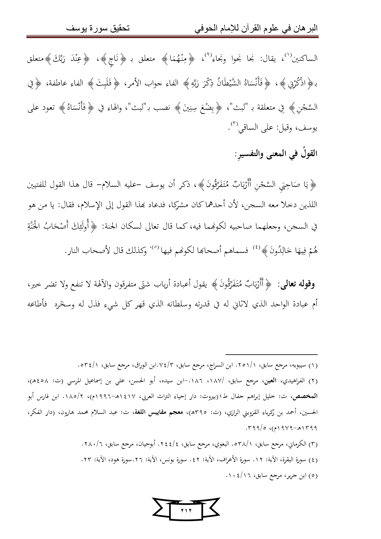 كتاب البرهان في علوم القرآن للإمام الحوفي - سورة يوسف