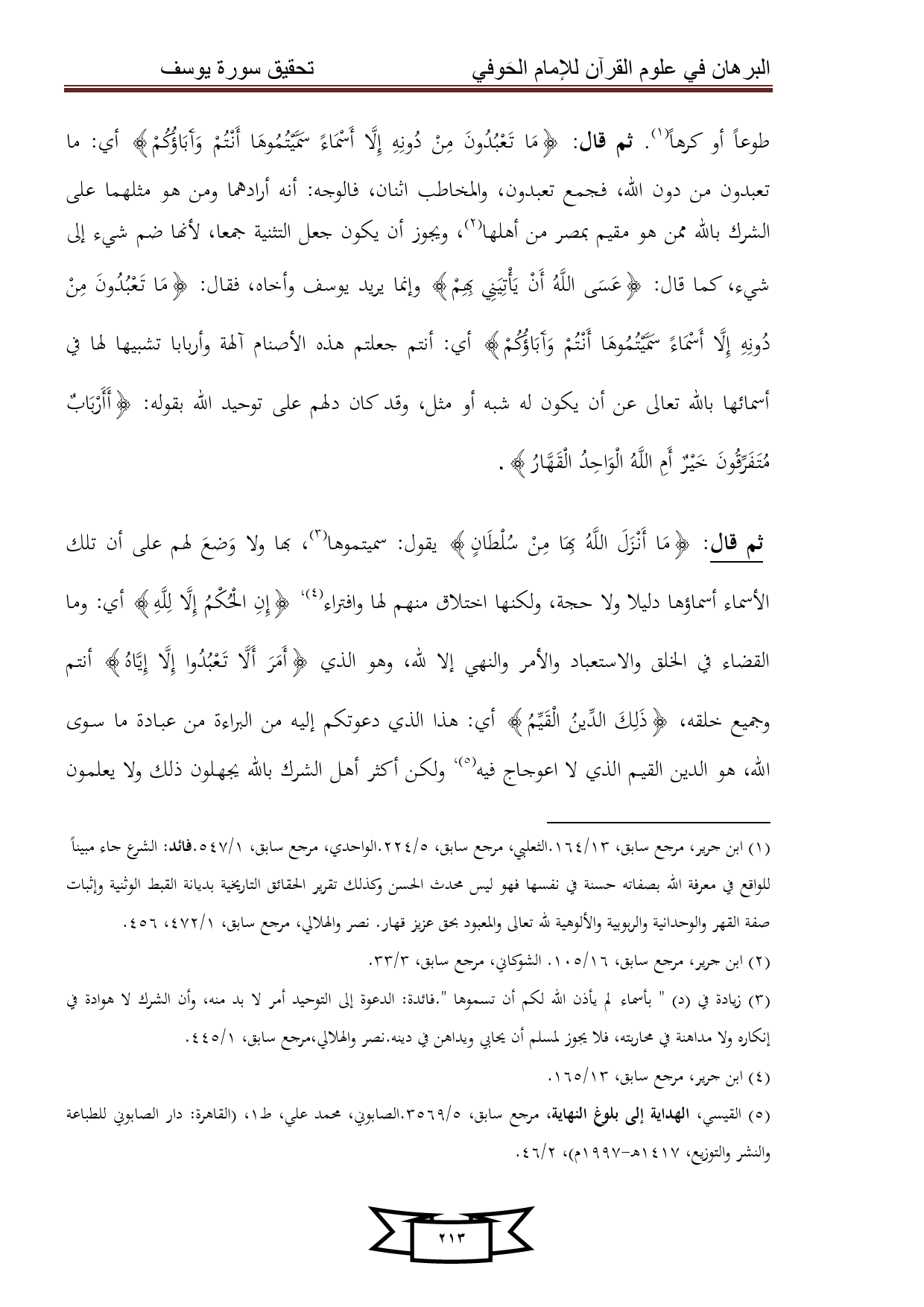 كتاب البرهان في علوم القرآن للإمام الحوفي - سورة يوسف