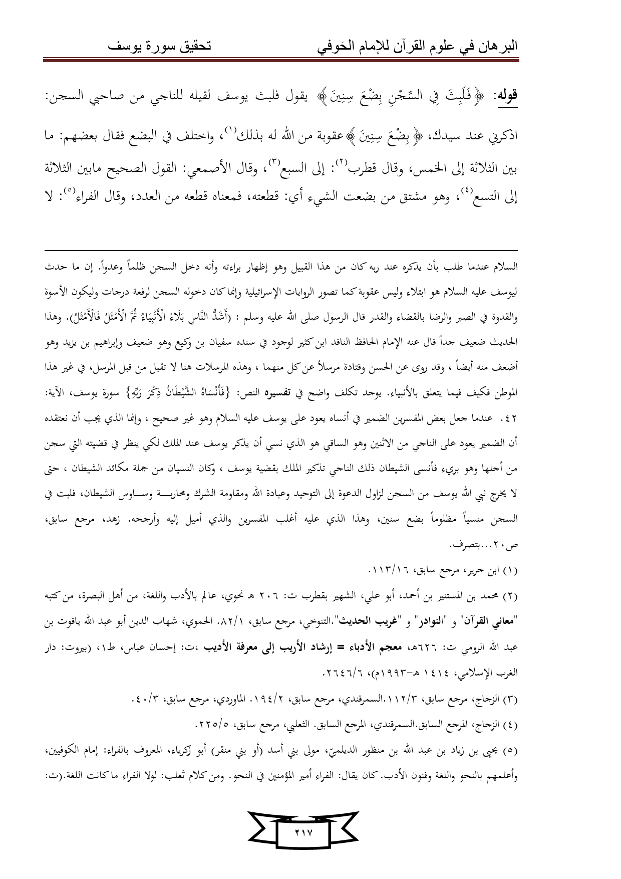 كتاب البرهان في علوم القرآن للإمام الحوفي - سورة يوسف