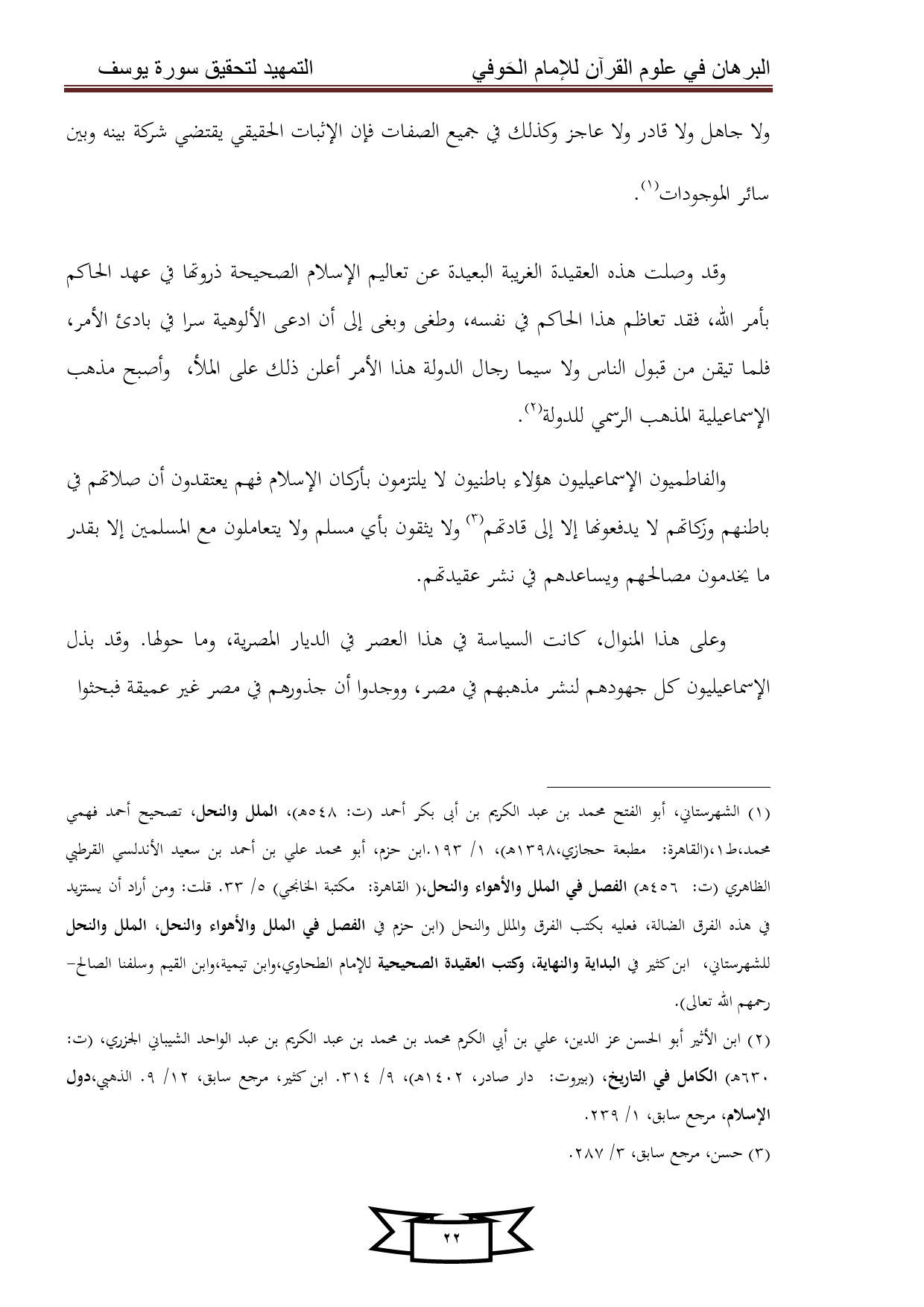 (¬1) الشهرستاني، أبو الفتح محمد بن عبد الكريم بن أبى بكر أحمد (ت: 548 هـ)، الملل والنحل، تصحيح أحمد فهمي محمد، ط 1، (القاهرة: مطبعة حجازي،1398 هـ)، 1/ 193.ابن حزم، أبو محمد علي بن أحمد بن سعيد الأندلسي القرطبي الظاهري (ت: 456 هـ) الفصل في الملل والأهواء والنحل، (القاهرة: مكتبة الخانجي) 5/ 33. قلت: ومن أراد أن يستزيد في هذه الفرق الضالة، فعليه بكتب الفرق والملل والنحل (ابن حزم في الفصل في الملل والأهواء والنحل، الملل والنحل للشهرستاني، ابن كثير في البداية والنهاية، وكتب العقيدة الصحيحية للإمام الطحاوي، وابن تيمية، وابن القيم وسلفنا الصالح- رحمهم الله تعالى).
