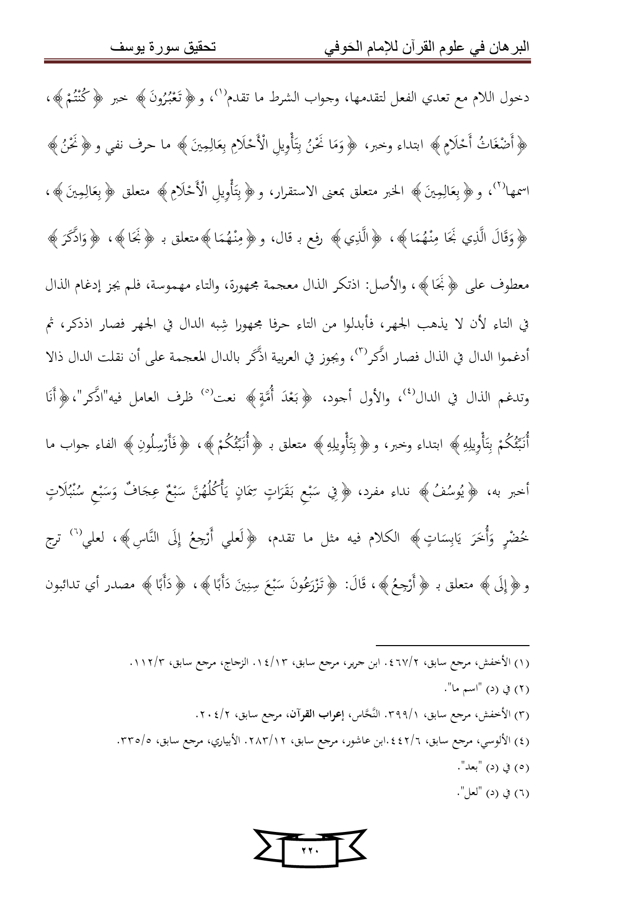 كتاب البرهان في علوم القرآن للإمام الحوفي - سورة يوسف