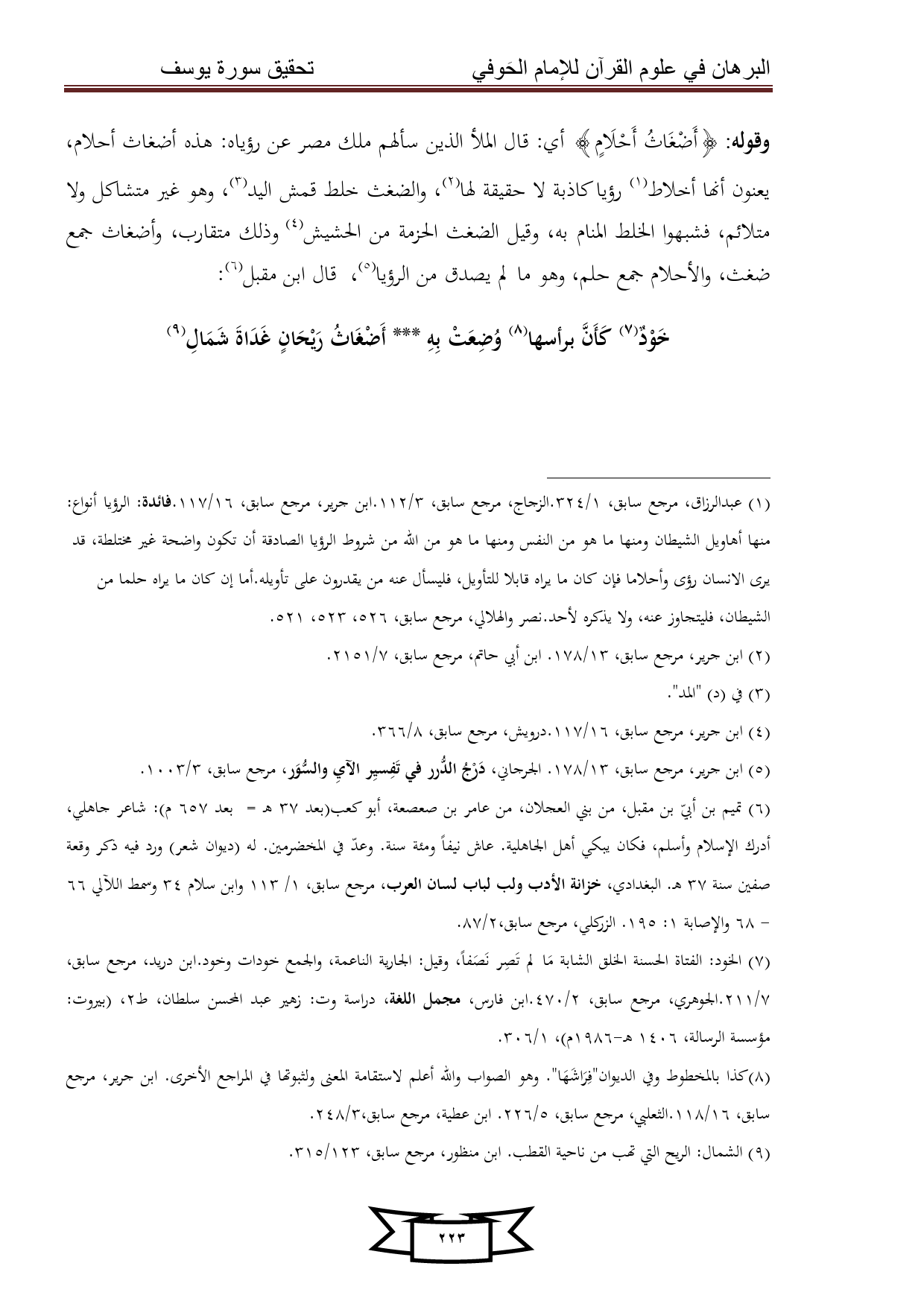 كتاب البرهان في علوم القرآن للإمام الحوفي - سورة يوسف