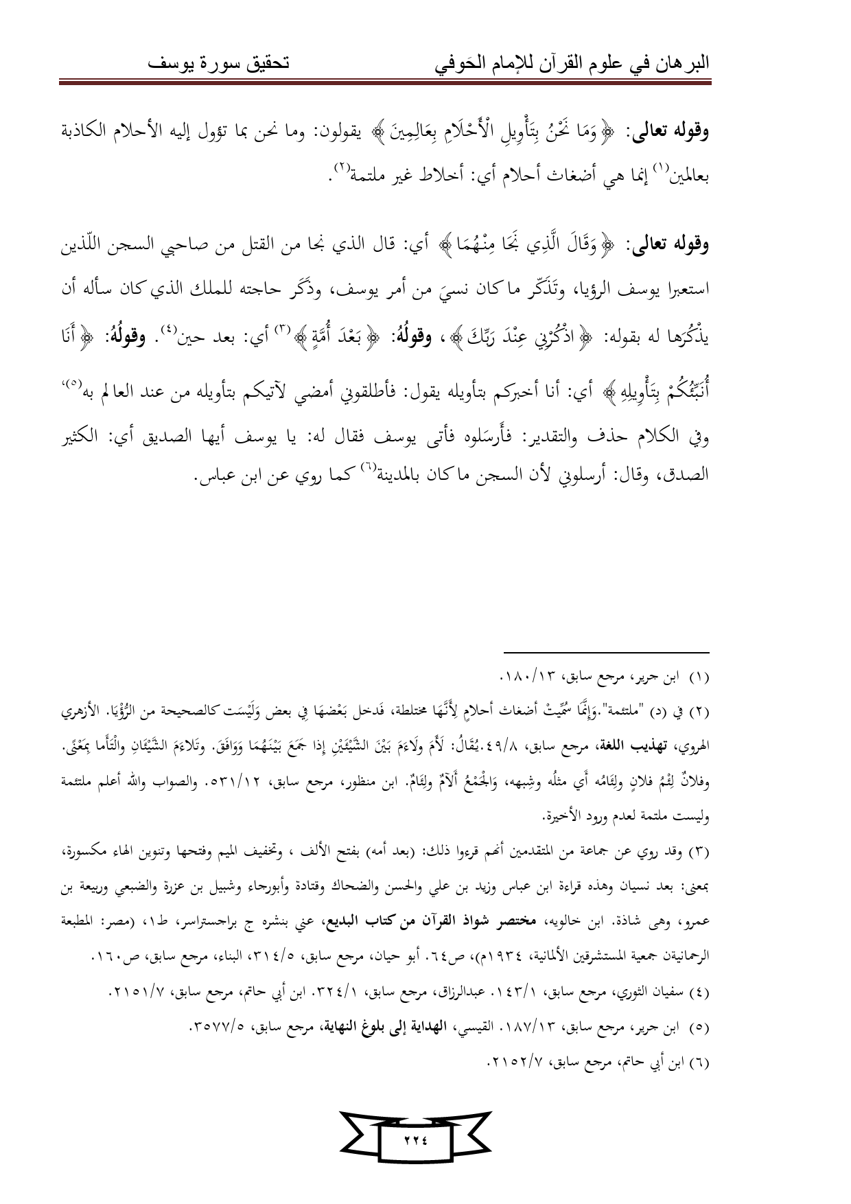 كتاب البرهان في علوم القرآن للإمام الحوفي - سورة يوسف