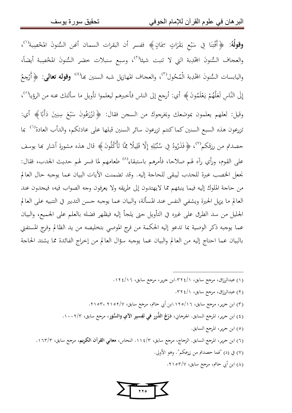 كتاب البرهان في علوم القرآن للإمام الحوفي - سورة يوسف
