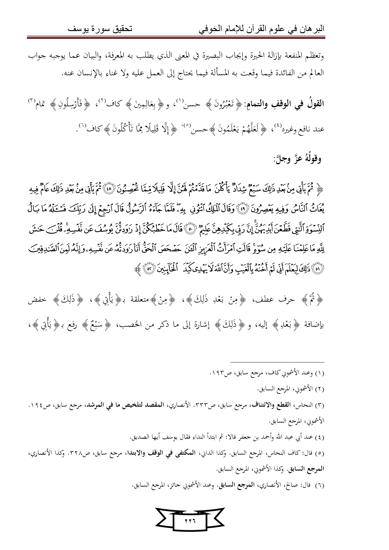 كتاب البرهان في علوم القرآن للإمام الحوفي - سورة يوسف