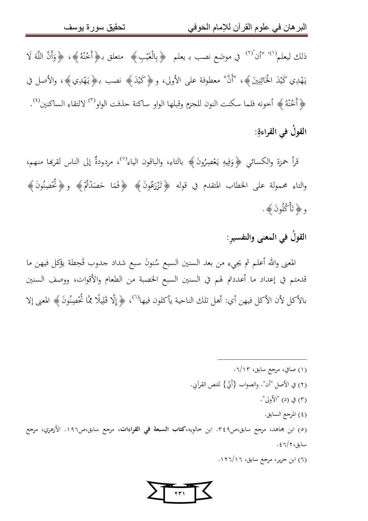 كتاب البرهان في علوم القرآن للإمام الحوفي - سورة يوسف