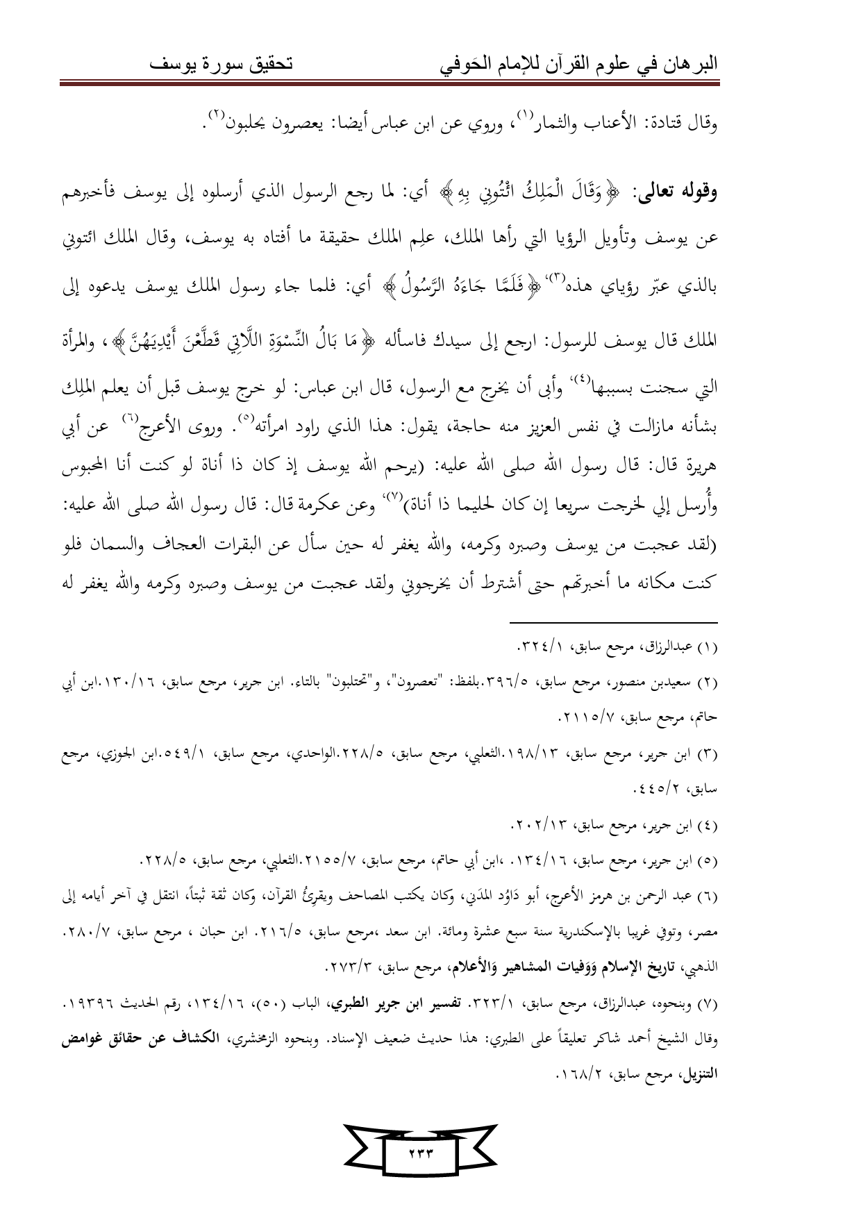 كتاب البرهان في علوم القرآن للإمام الحوفي - سورة يوسف
