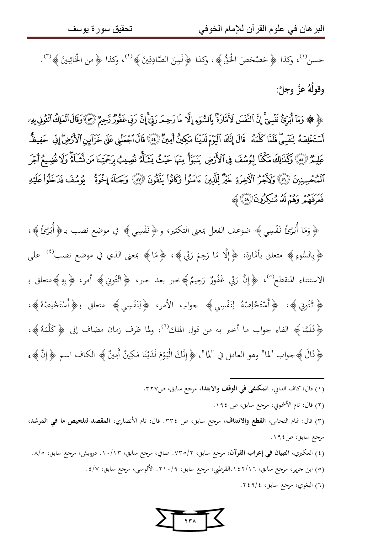 كتاب البرهان في علوم القرآن للإمام الحوفي - سورة يوسف