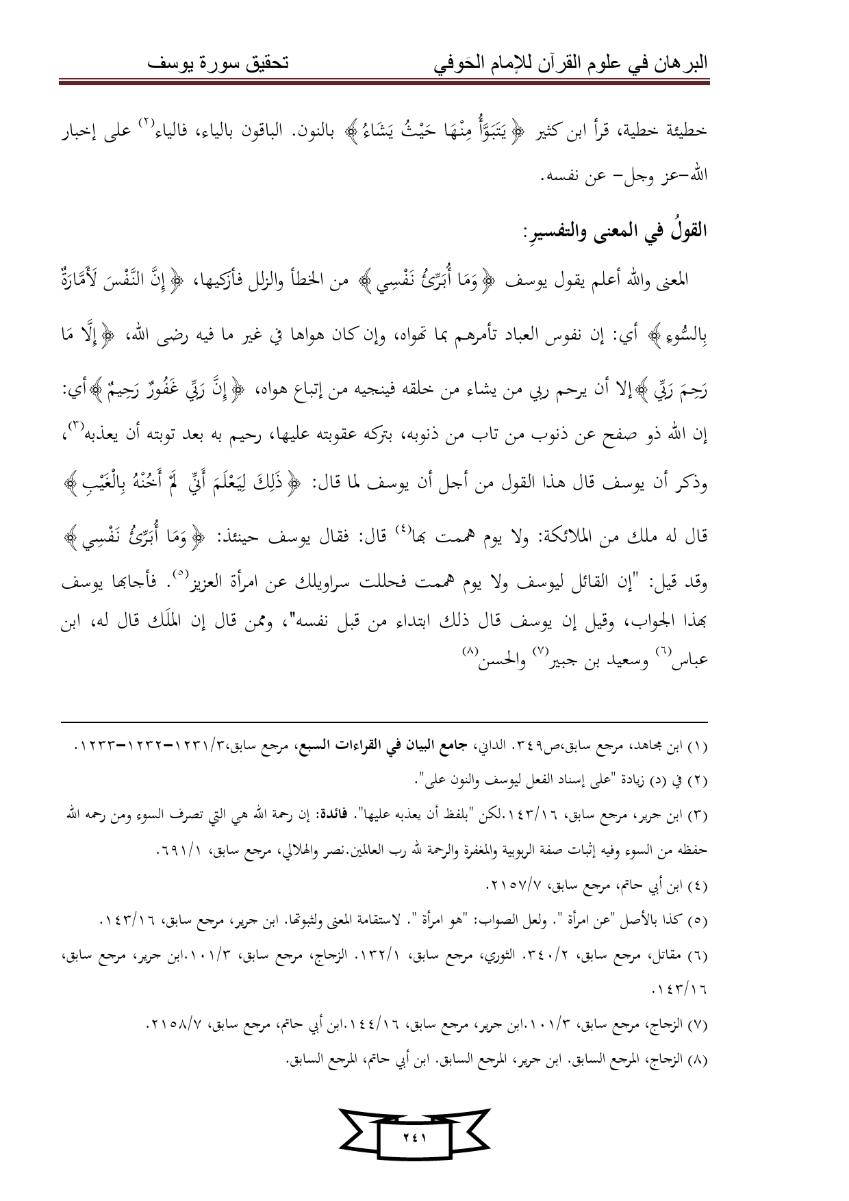كتاب البرهان في علوم القرآن للإمام الحوفي - سورة يوسف