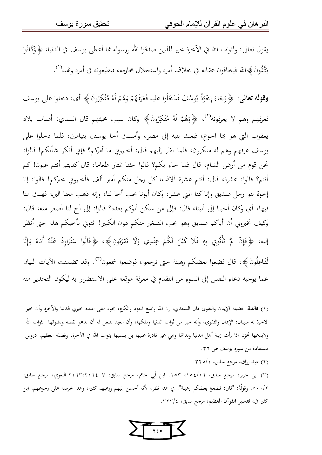 كتاب البرهان في علوم القرآن للإمام الحوفي - سورة يوسف