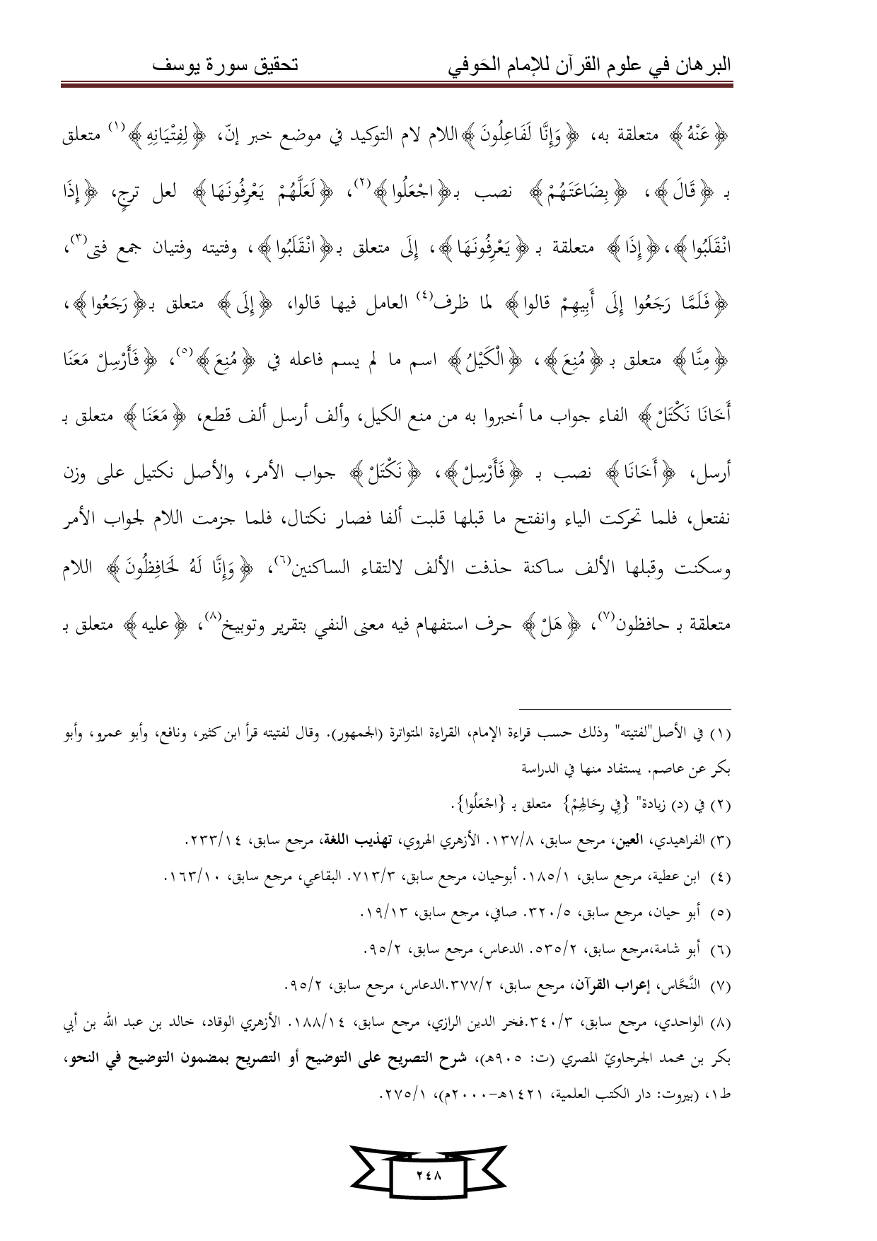 كتاب البرهان في علوم القرآن للإمام الحوفي - سورة يوسف