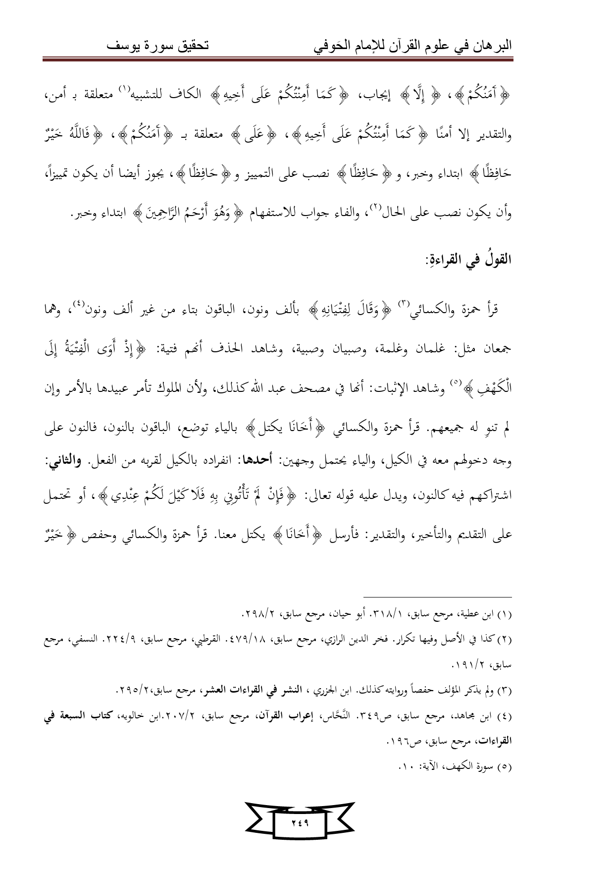 كتاب البرهان في علوم القرآن للإمام الحوفي - سورة يوسف