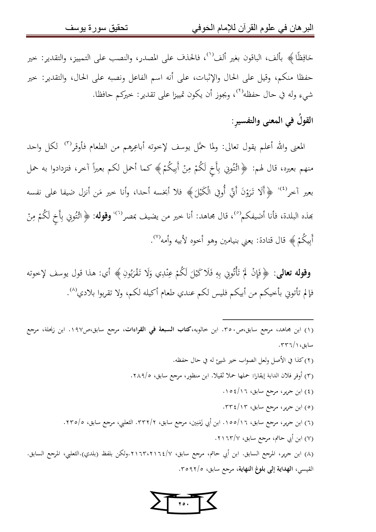 كتاب البرهان في علوم القرآن للإمام الحوفي - سورة يوسف