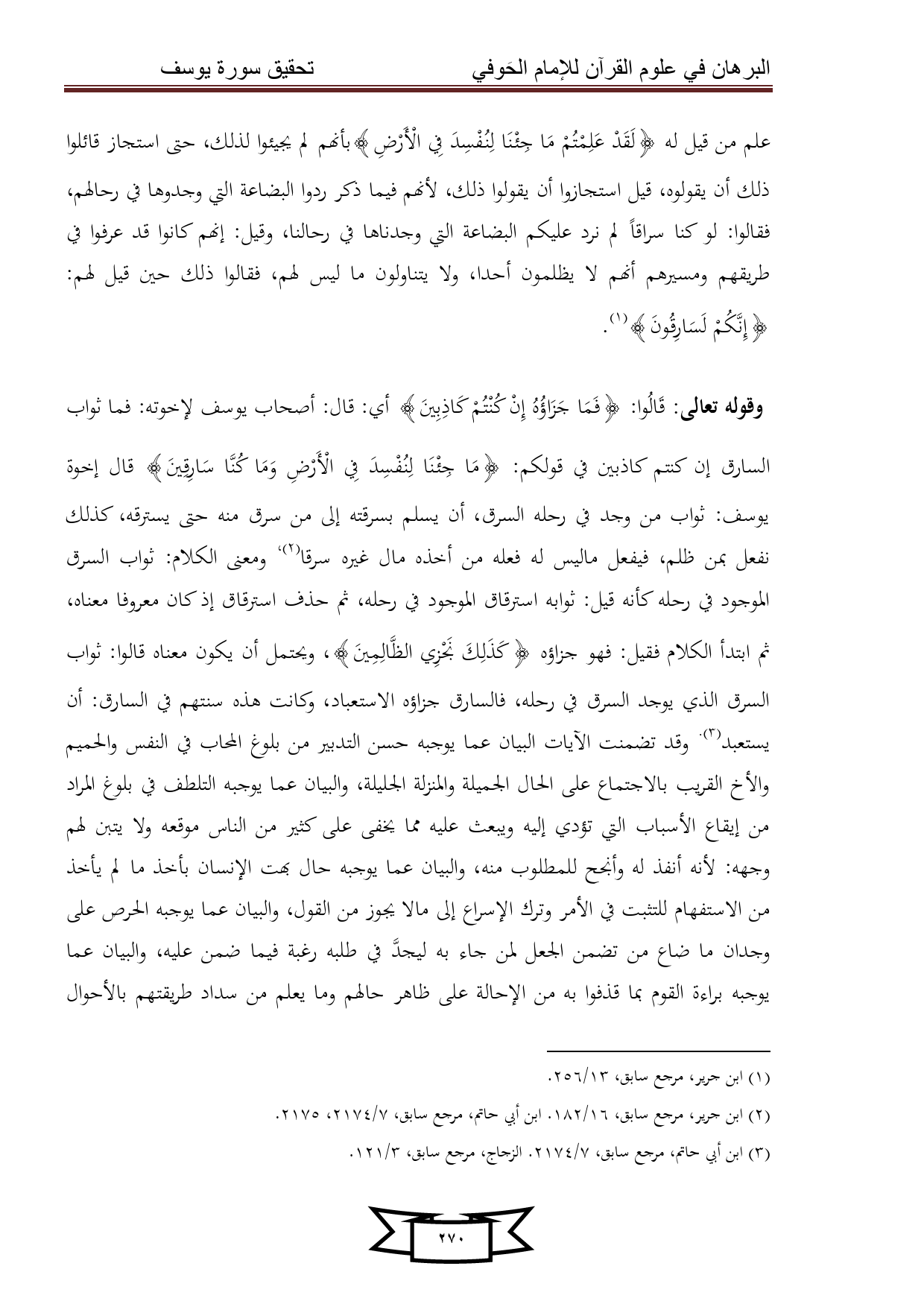 كتاب البرهان في علوم القرآن للإمام الحوفي - سورة يوسف