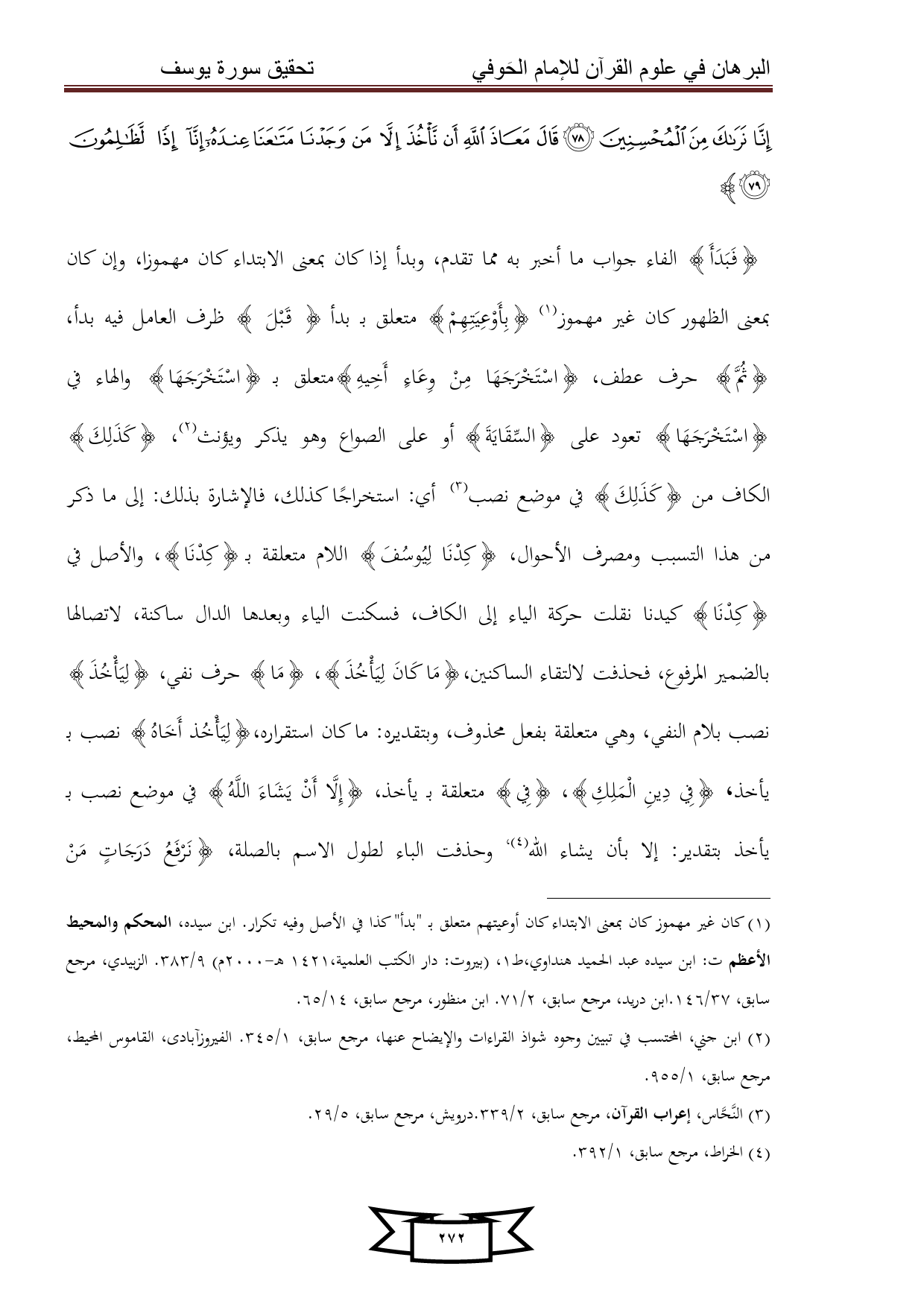 كتاب البرهان في علوم القرآن للإمام الحوفي - سورة يوسف