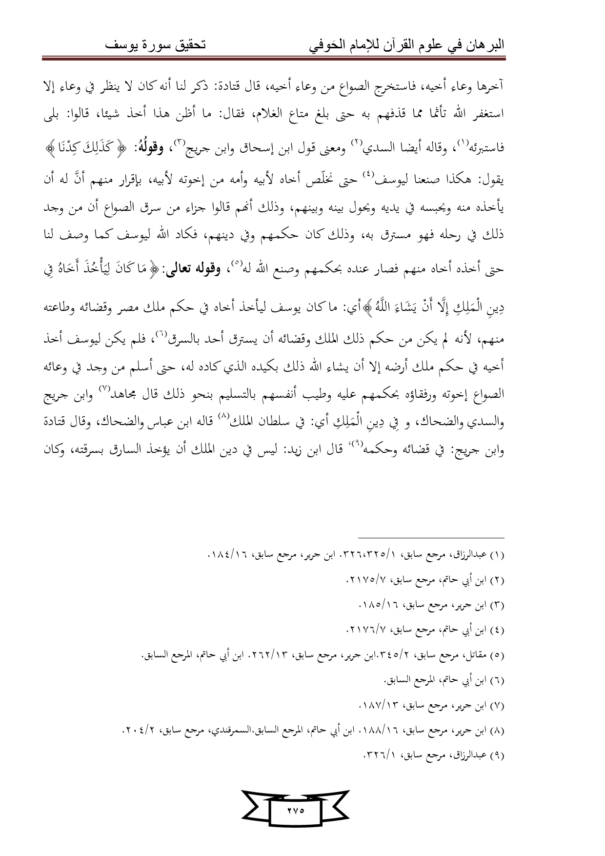 كتاب البرهان في علوم القرآن للإمام الحوفي - سورة يوسف