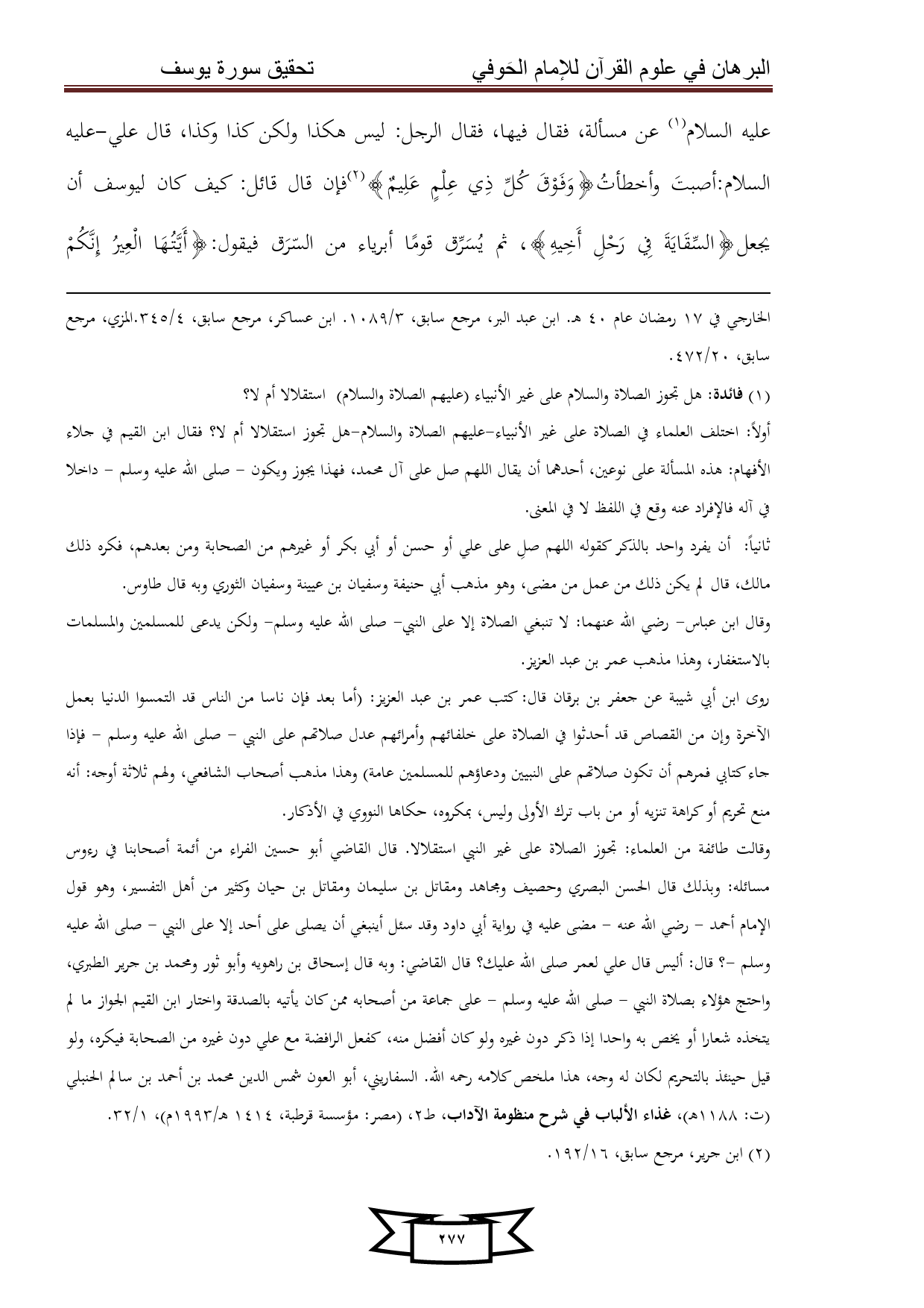 كتاب البرهان في علوم القرآن للإمام الحوفي - سورة يوسف