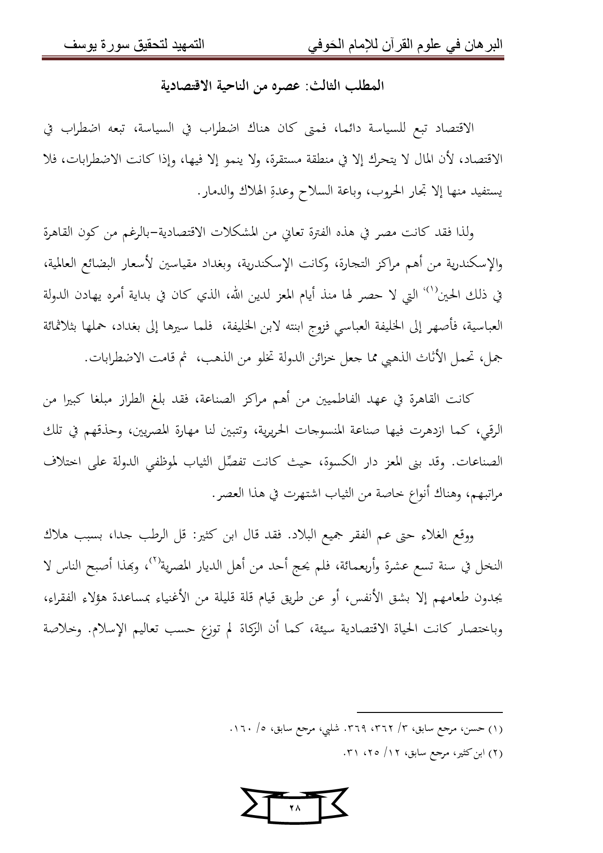كتاب البرهان في علوم القرآن للإمام الحوفي - سورة يوسف