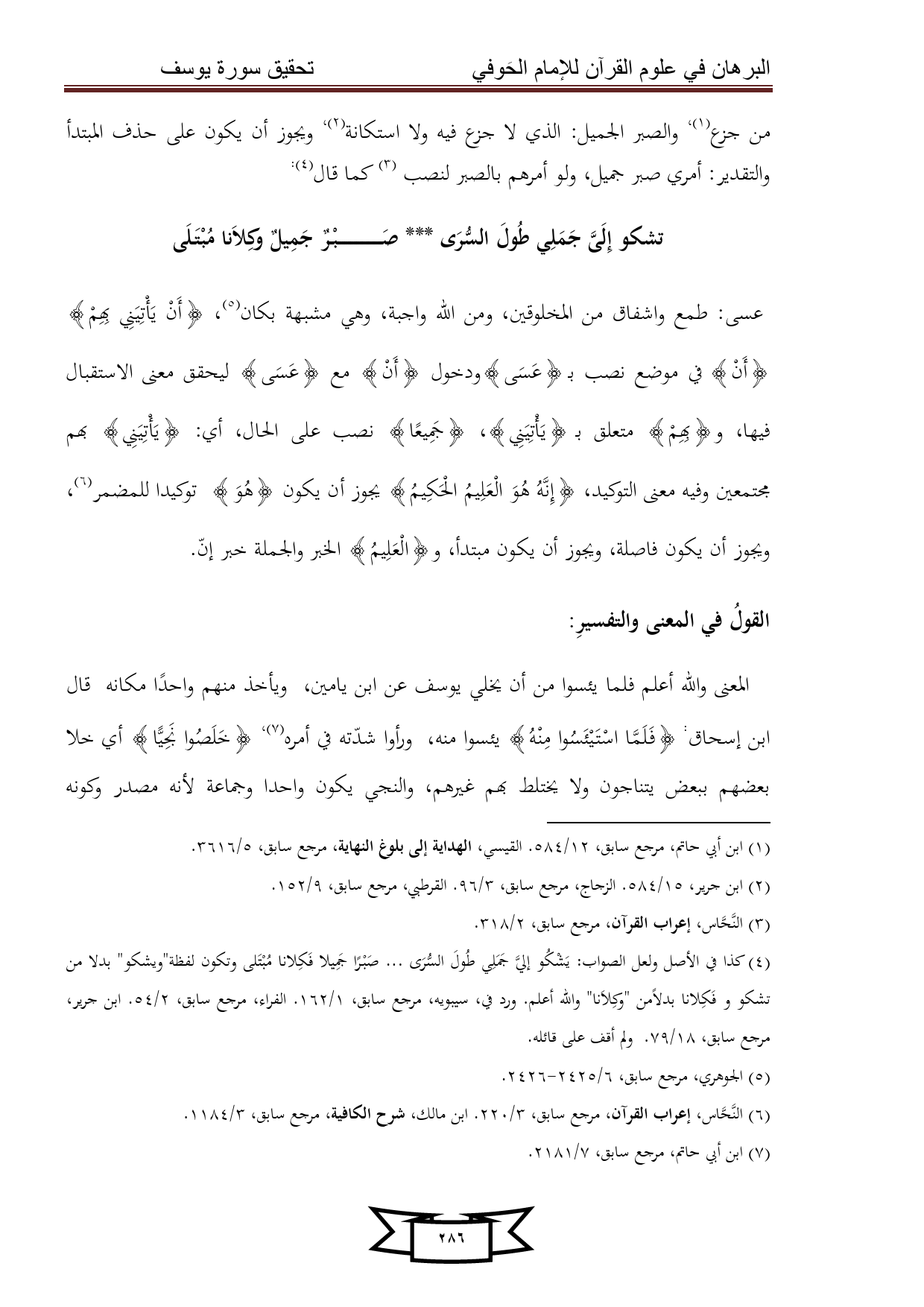 كتاب البرهان في علوم القرآن للإمام الحوفي - سورة يوسف
