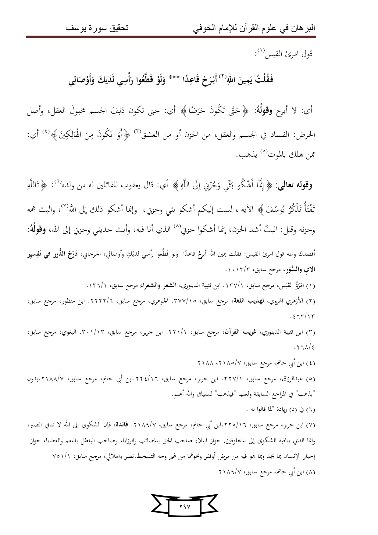 كتاب البرهان في علوم القرآن للإمام الحوفي - سورة يوسف