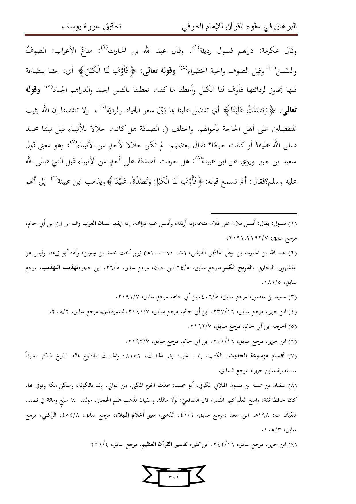 كتاب البرهان في علوم القرآن للإمام الحوفي - سورة يوسف