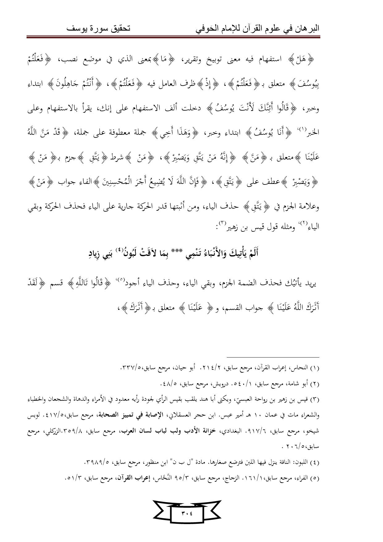 كتاب البرهان في علوم القرآن للإمام الحوفي - سورة يوسف