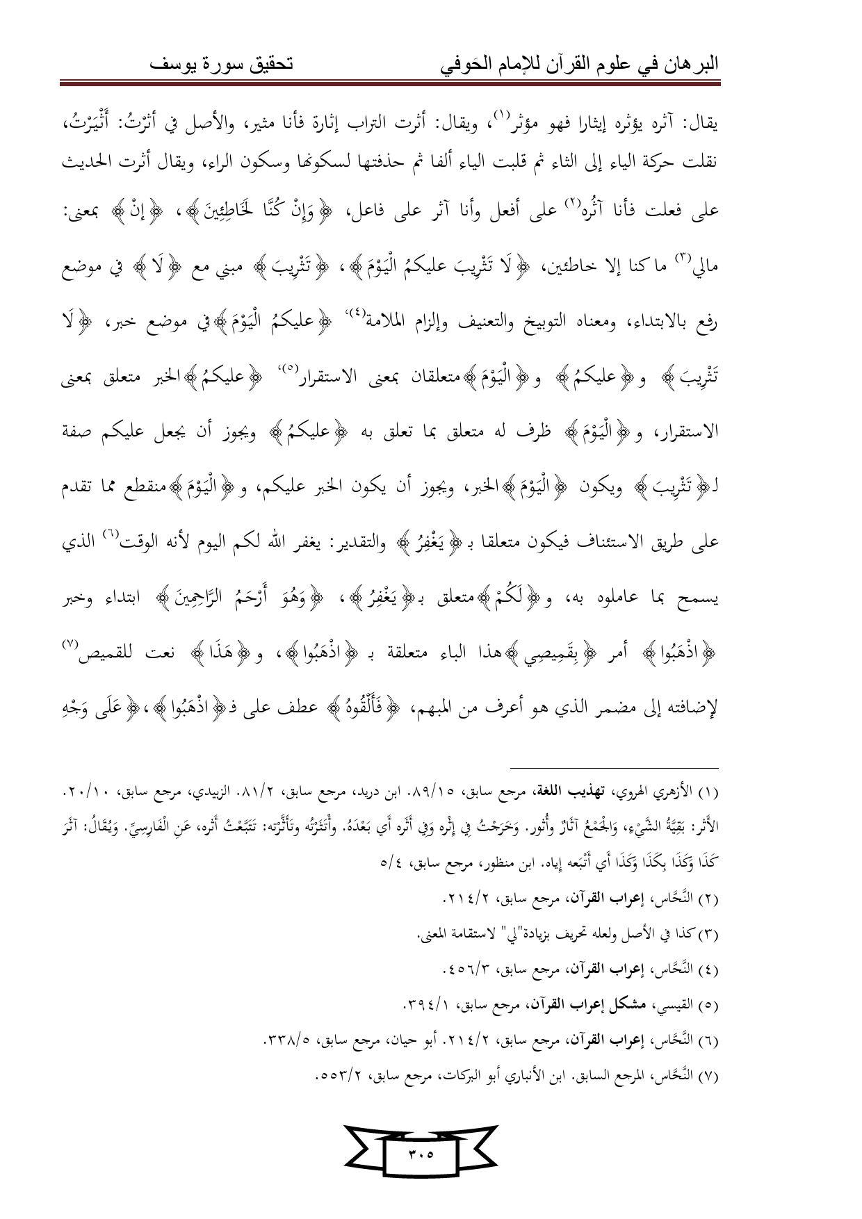 كتاب البرهان في علوم القرآن للإمام الحوفي - سورة يوسف