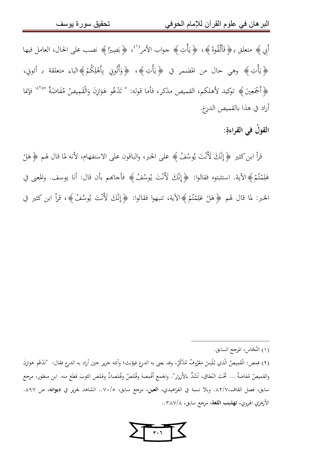 كتاب البرهان في علوم القرآن للإمام الحوفي - سورة يوسف