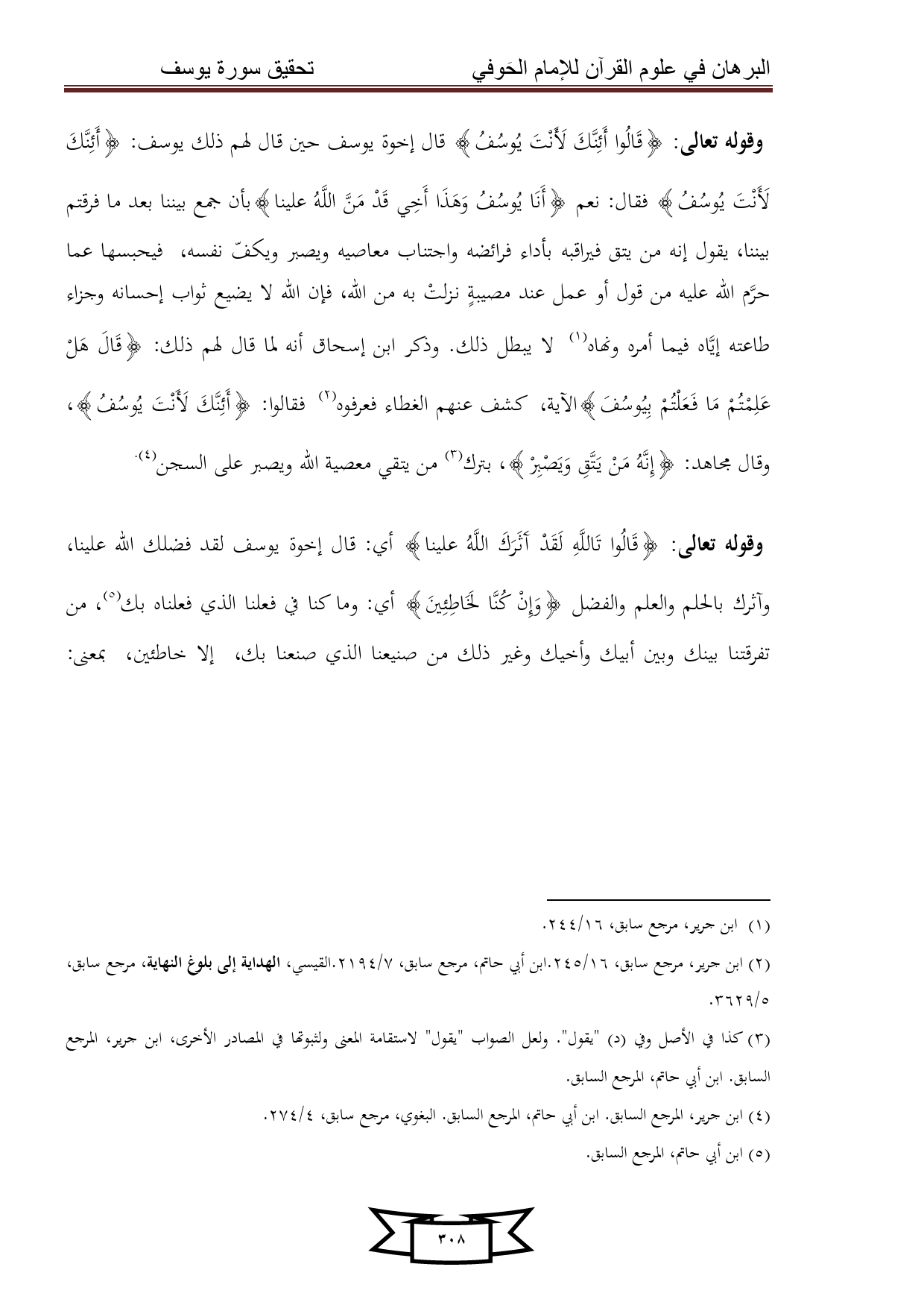 كتاب البرهان في علوم القرآن للإمام الحوفي - سورة يوسف