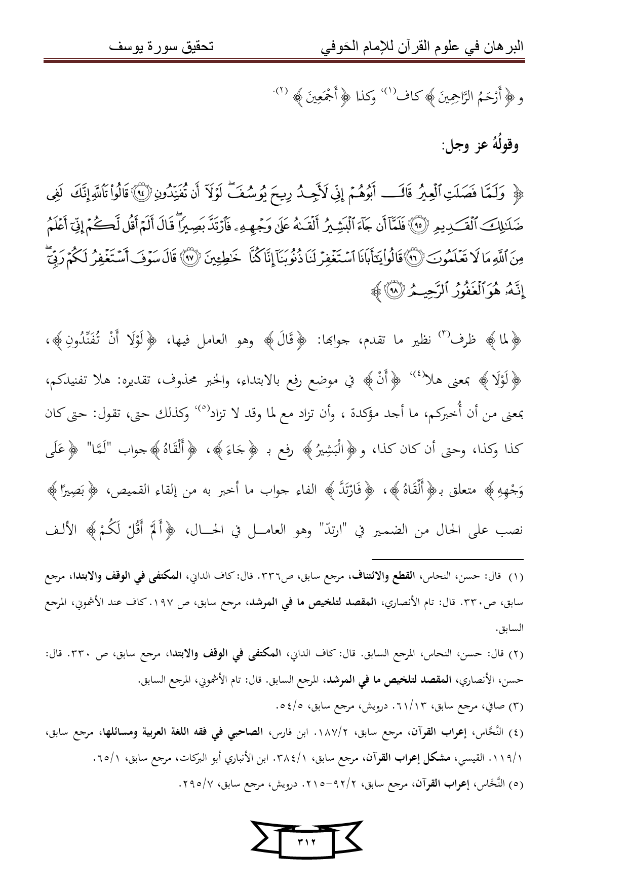 كتاب البرهان في علوم القرآن للإمام الحوفي - سورة يوسف