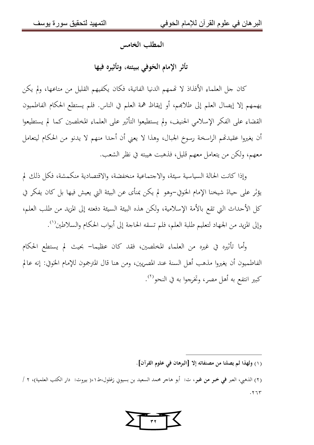 كتاب البرهان في علوم القرآن للإمام الحوفي - سورة يوسف