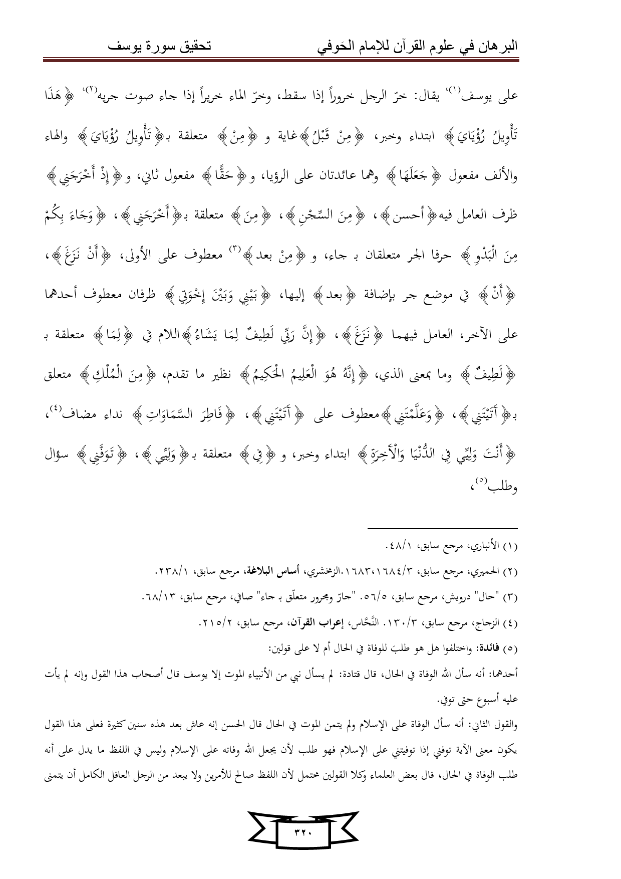 كتاب البرهان في علوم القرآن للإمام الحوفي - سورة يوسف