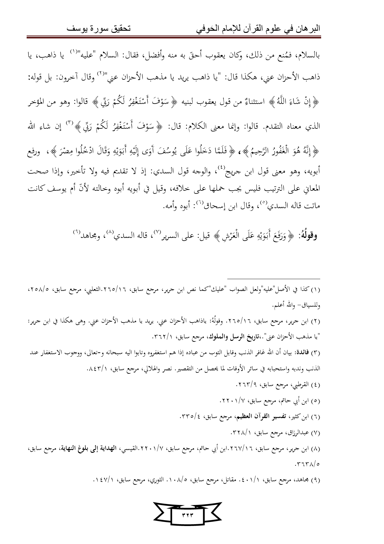 كتاب البرهان في علوم القرآن للإمام الحوفي - سورة يوسف