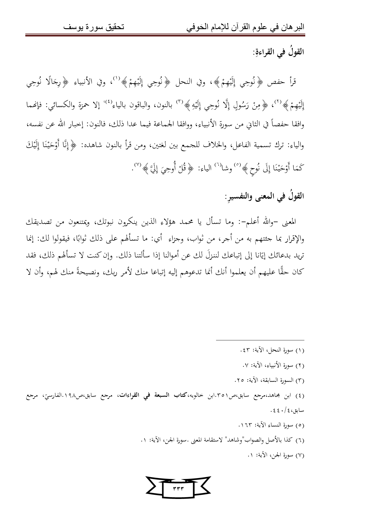 كتاب البرهان في علوم القرآن للإمام الحوفي - سورة يوسف