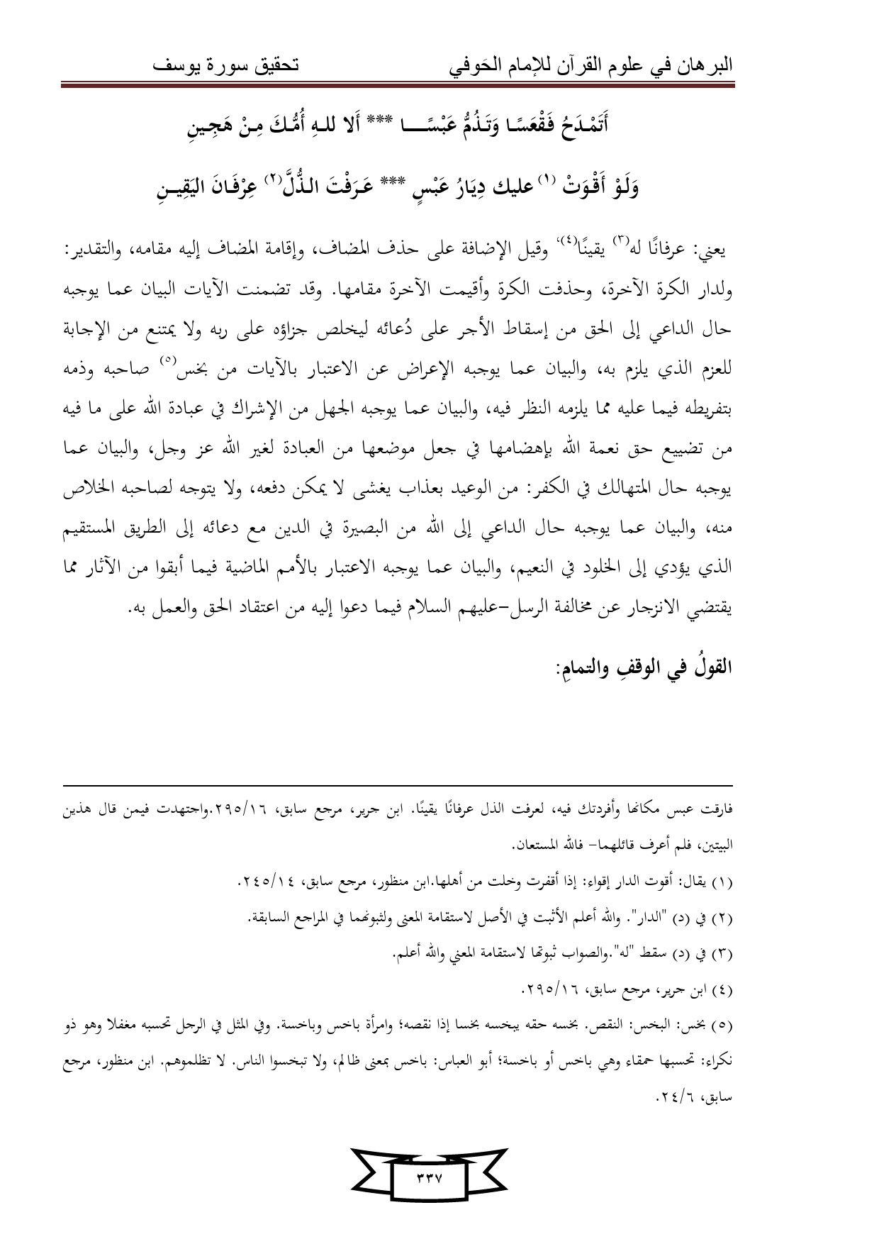 كتاب البرهان في علوم القرآن للإمام الحوفي - سورة يوسف