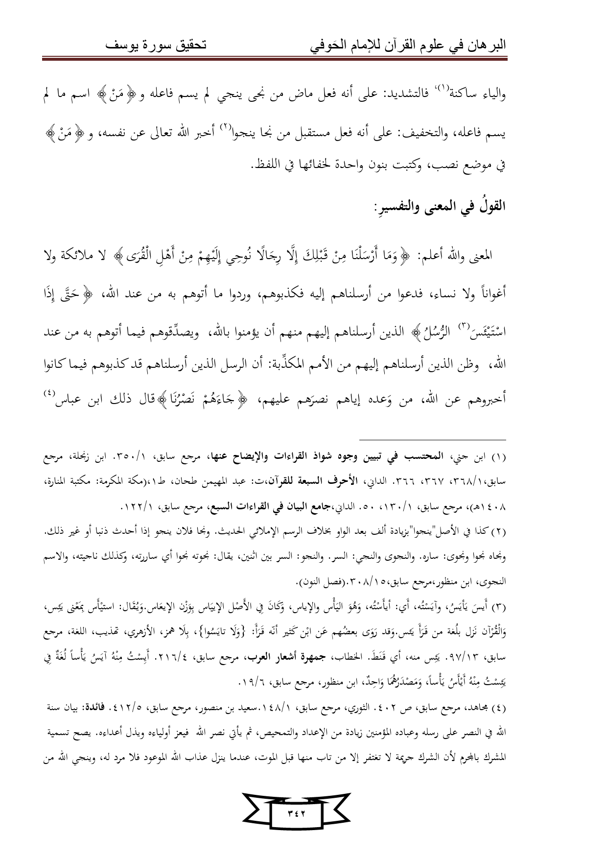 كتاب البرهان في علوم القرآن للإمام الحوفي - سورة يوسف