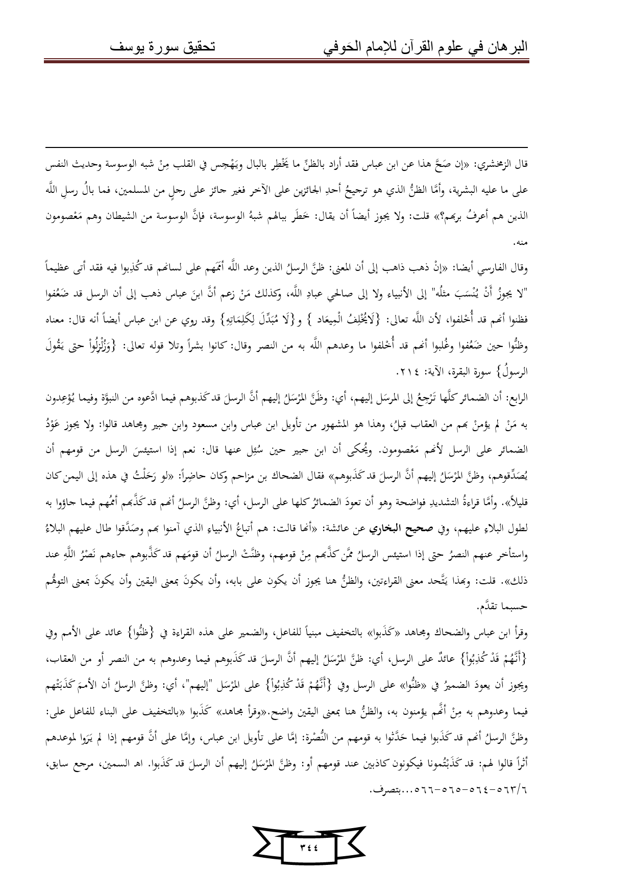 كتاب البرهان في علوم القرآن للإمام الحوفي - سورة يوسف