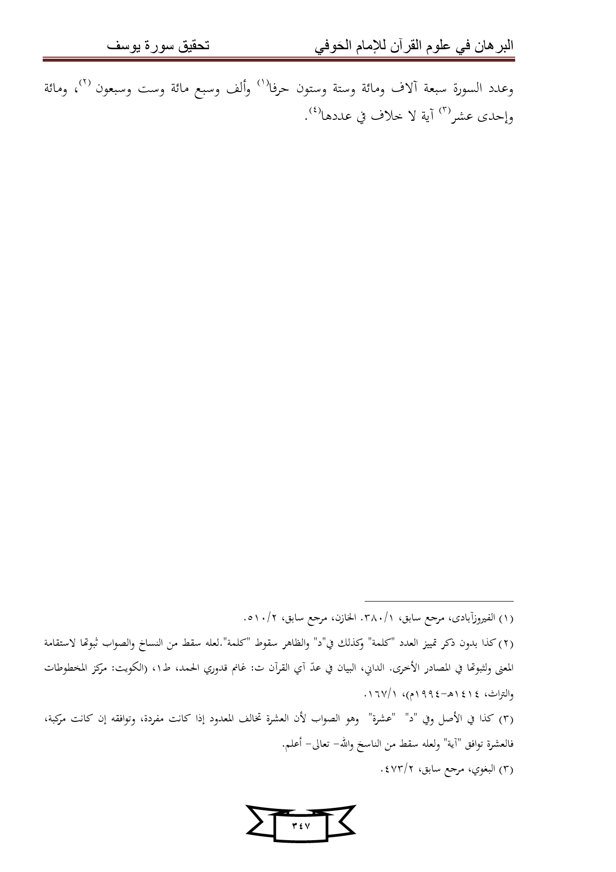كتاب البرهان في علوم القرآن للإمام الحوفي - سورة يوسف