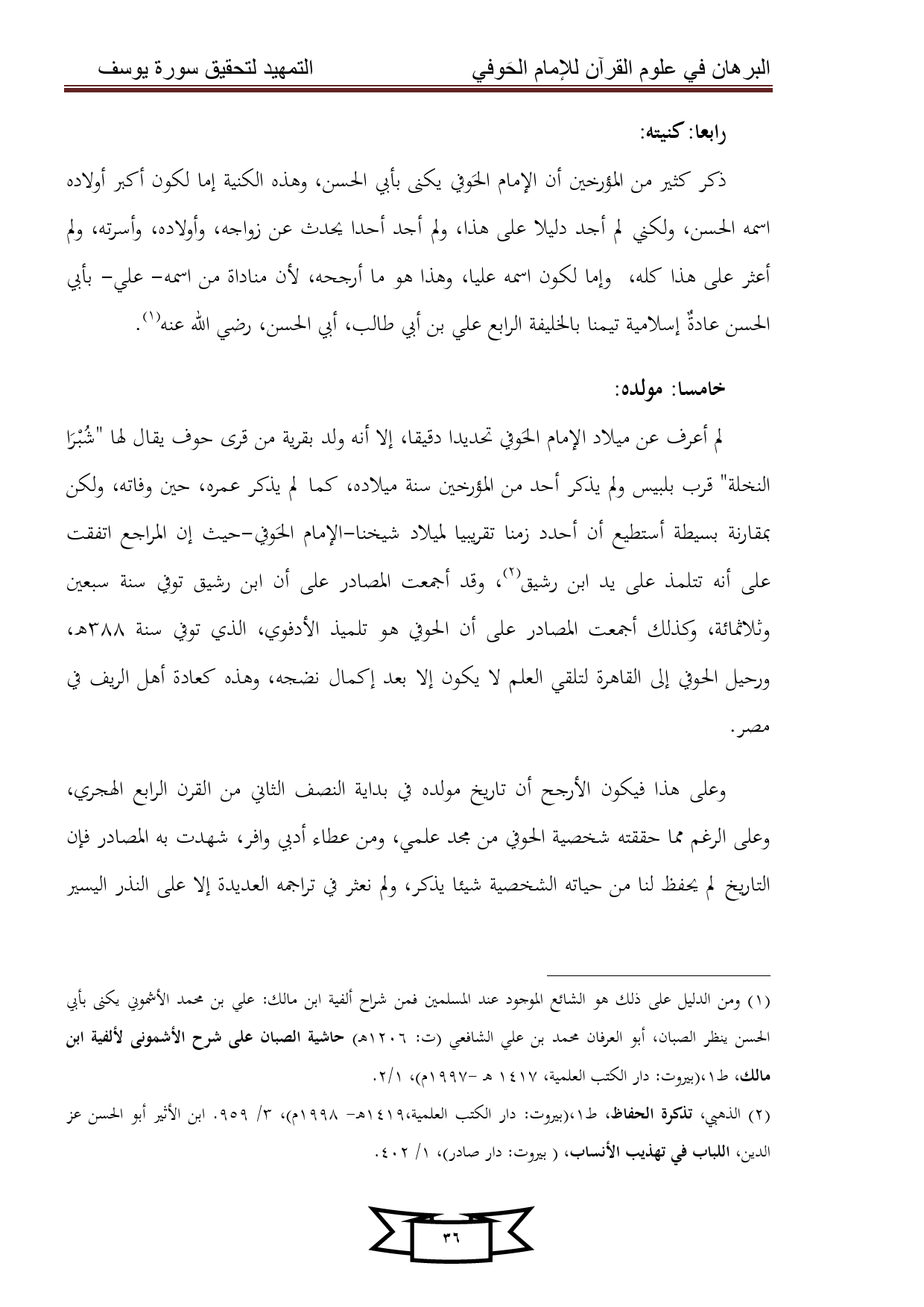 كتاب البرهان في علوم القرآن للإمام الحوفي - سورة يوسف